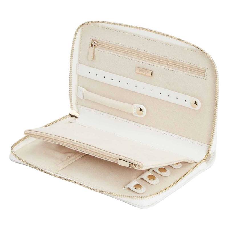 Vous êtes une grande voyageuse, avide d'aventures, aimant voyager léger mais toujours accompagner de vos bijoux préférés ? Ne cherchez plus, et faites de ce portefeuille à bijoux votre meilleur allié lors de vos voyages. De chez Wolf 1834, cette maison allemande est réputée pour son savoir-faire artisanal et de grande qualité. En effet, chacune de ses boîtes à bijoux sont doublées d'un tissu traité au LusterLoc permettant d'éviter le ternissement de vos bijoux.