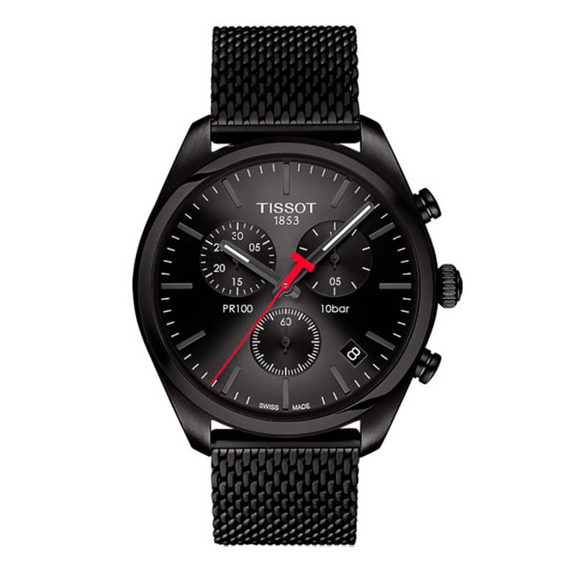 Nouveauté dans la série PR 100, ce modèle de chronographe qualitatif vous propose une élégance sportive racée à toute épreuve. Cela dit, notez le fait qu'une pointe d'inspiration vintage transparait via le bracelet en maille milanaise. Côté qualité et dimensions, le boitier est réalisé en acier inoxydable 316L pour une grande solidité et est pourvu d'un traitement PVD noir apportant élégance et sportivité. Il propose un diamètre de 41 mm et une épaisseur de 11mm, le tout pour une poids de la montre de 115g. Pour poursuivre dans la durabilité, c'est un verre saphir connu pour sa résistance aux rayures qui vient équiper le modèle, tandis que le fond de boite est emboité. Boutons poussoirs et couronne sont placés de manière classique à droite du boitier.