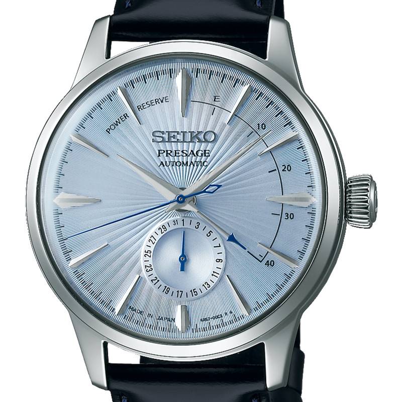 La maison japonaise Seiko vous dévoile en 2017 sa nouvelle collection de montres Présage. Inaugurée lors du BaselWorld 2017, cette collection est inspirée du charme et de la sophistication des bars à cocktails. En effet, chaque modèle à la particularité de représenter un cocktail décliné dans sa propre palette de couleur. Ce modèle « Sky Diving » de la haute horlogerie « Made in Japan » est conçu avec un boîtier en acier inoxydable affichant un diamètre de 40.5 millimètres pour une épaisseur de 14.5 millimètres. C'est un verre en Hardlex qu'on retrouve pour surmonter la boite tandis que le fond de boite est vissé et transparent laissant apparaitre la masse oscillante du mouvement automatique pour le plus grand plaisir des amoureux d'horlogerie traditionnelle. Ce modèle élégant et raffiné nous démontre encore une nouvelle fois le savoir-faire et la qualité des produits de ce fleuron de l'horlogerie traditionnelle.