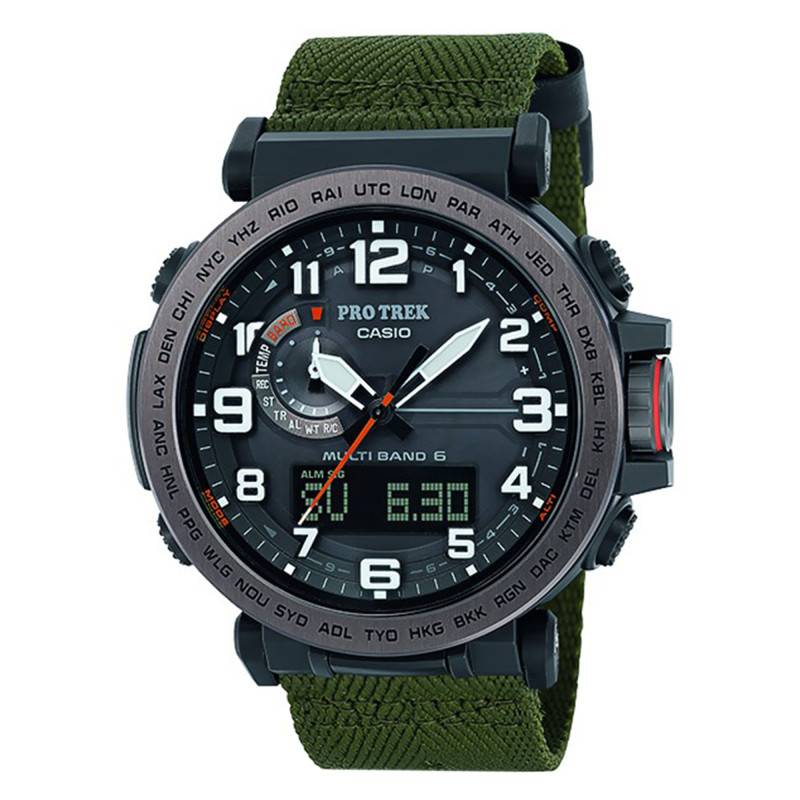 Cet impressionnant modèle dispose d'un cadran à affiche analogique et digital. Les heures sont représentées par des chiffres arabes luminescents (grâce à une technologie Neobrite), positionnés sur la circonférence du cadran. Au même niveau vous remarquerez également la présence d'un chemin de fer des minutes. Les heures et les minutes sont indiquées par deux aiguilles bâtons portant une couche de Neobrite. Les secondes sont pointées par une aiguille fil de couleur orange. Ce cadran offre un éclairage Full Auto LED qui vous permettra une utilisation en lieu à faible luminosité. La moitié basse du cadran affiche plusieurs fonctions comme la date ou encore l'alarme. À dix heure, un compteur offre notamment les fonctions baromètre, altimètre, thermomètre. Vous l'aurez compris, cette Pro Trek regorge de possibilités.