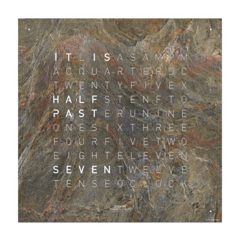Qlocktwo vous propose des horloges surprenantes qui apportent un design unique et très contemporain. Aujourd'hui, elle vous propose de découvrir sa nouvelle Qlocktwo Earth 45 : EDITION GMINTSCAPE qui reprend des tons neutres parfait pour tous les intérieurs. Elle s'habille d'une couverture faite de roche sédimentaire vieille de plusieurs millions d'années. Elle vous surprendra avec ses reliefs uniques et ses reflets de différentes couleurs comme le vert, le rouge ou encore le doré.