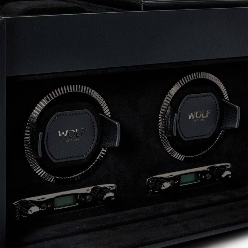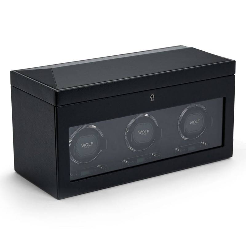 La maison Wolf 1834, spécialisée dans la conception d'accessoires de luxe pour bijoux et montres, vous propose de découvrir son sublime remontoir Triple Watch noir. Fabriqué à la main, il est entièrement revêtu d'une martière végétalienne de couleur noire profonde. Afin de lui apporter une finition de qualité et de l'élégance, les détails sont minutieusement travaillés, notamment les lignes aux finitions canon de fusil qui confèrent une allure sophistiquée et moderne. De plus, vos montres seront entièrement protégées grâce au couvercle révolutionnaire à panneaux quadruples angulaires. Vous pourrez le fermer pour plus de sécurité à l'aide de la serrure et sa clé. Il peut accueillir trois modules de remontage, quatre modules de rangement avec coussins suspendus, un compartiment ouvert et un étui de voyage composé d'un module de rangement pour montre et d'un compartiment avec couvercle. Enfin, ce boîtier mesure 45,1 cm de longueur, 20,3 cm de largeur et 22,9 cm de hauteur.