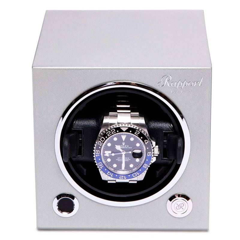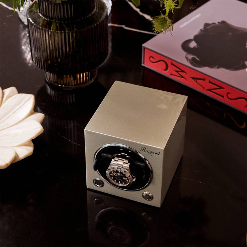 Véritable écrin de luxe pour les garde-temps automatiques, ce remontoir EVO45 présenté par la maison Rapport London vous séduira par son design élégant et ses différentes fonctions. Appartenant à la collection Evolution MKIII, il se présente sous une forme cube. Conçu en bois, ce modèle argenté est habillé de différentes couches de laque. Vous trouverez au centre un coussin noir en cuir réglable équipé de clips. Son support parfaitement stabilisé vous permettra d'y accrocher votre montre en toute sécurité. Par ailleurs, ce modèle est idéal pour tout type de garde-temps même les plus grands !