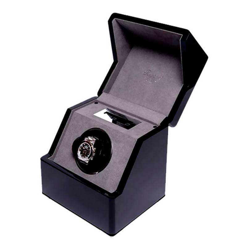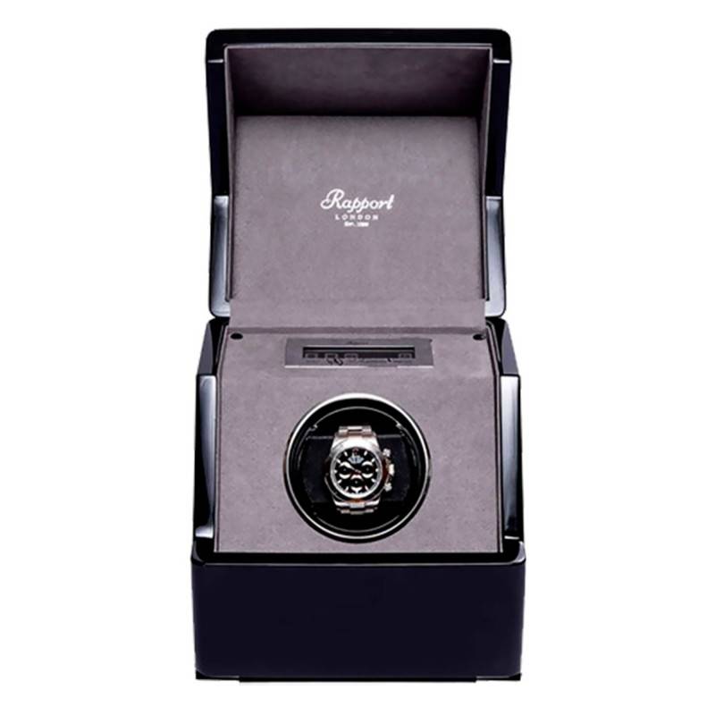 Laissez-vous séduire par ce remontoir Perpetua III W571 signé Rapport London. De couleur noire avec une somptueuse finition laquée à la main,ce remontoir en forme cube est l'endroit rêvé pour votre montre mécanique. L'intérieur est doublé d'un doux cuir daim gris et dispose d'un coussin en cuir noir pour maintenir votre montre, quelque soit sa taille de bracelet. Le compartiment tourne à l'aide d'un mécanisme exceptionnellement silencieux pour remonter votre montre lorsque vous ne la portez pas. Vous n'aurez plus à vous soucier de remonter votre montre manuellement. En effet, ce remontoir dispose d'un écran de contrôle tactile LCD pour vous permettre de choisir vos réglages préférés pour le remontage tels que le nombre de rotations par jour, le sens de rotation et la vitesse du mouvement.