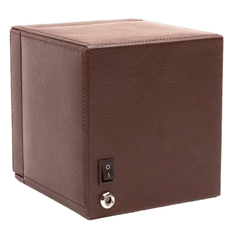 Ce modèle dispose d'un couvercle en verre qui permet de fermer le remontoir et de protéger le produit. Le revêtement extérieur est fait d'un matériau synthétique issu de végétaux.