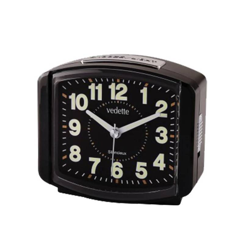 La marque française Vedette propose depuis 1927, des produits innovants. Elle vous présente aujourd'hui son nouveau modèle VR10110 de la collection réveil quartz lumineux et silencieux. Ce réveil dispose d'un boîtier de forme rectangulaire en plastique, de couleur noire. Le réveil vous permettra de le ranger partout facilement pour vous accompagner pendant vos voyages avec ses dimensions de 9.5 x 11.3 x 6.3 cm. Il s'accordera à tous vos éléments de décoration par sa sobriété. Par ailleurs, ce réveil vous offrira un affichage analogique de qualité grâce notamment à la lumière jaune pour éclairer le cadran. Des chiffres arabes vous indiqueront avec précision l'heure de part et d'autre du cadran. Enfin, vous noterez que la marque signe son nom sous l'index des douze heures.