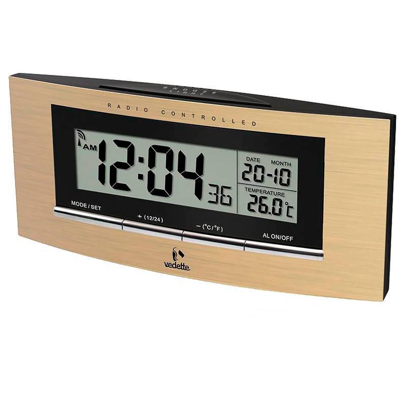 Vedette vous présente ce ravissant réveil à l'écran LCD qui viendra habiller votre intérieur d'une pointe de chic et d'élégance. Il est composé d'un plastique de couleur marron sur la face et noir sur l'arrière du réveil. Ses dimensions sont les suivantes : hauteur : 5,5 cm largeur : 12,8 cm et profondeur : 4,3 cm. Son affichage numérique vous donnera l'heure, la température, la date... Les quatre boutons de réglage viendront se poser sur le dessus du réveil.
