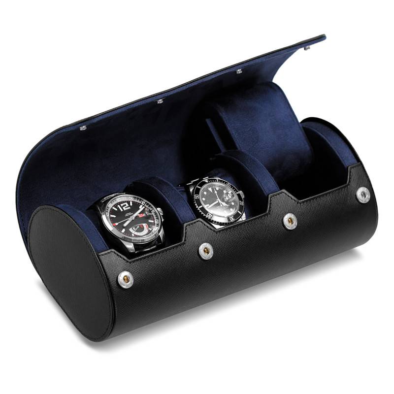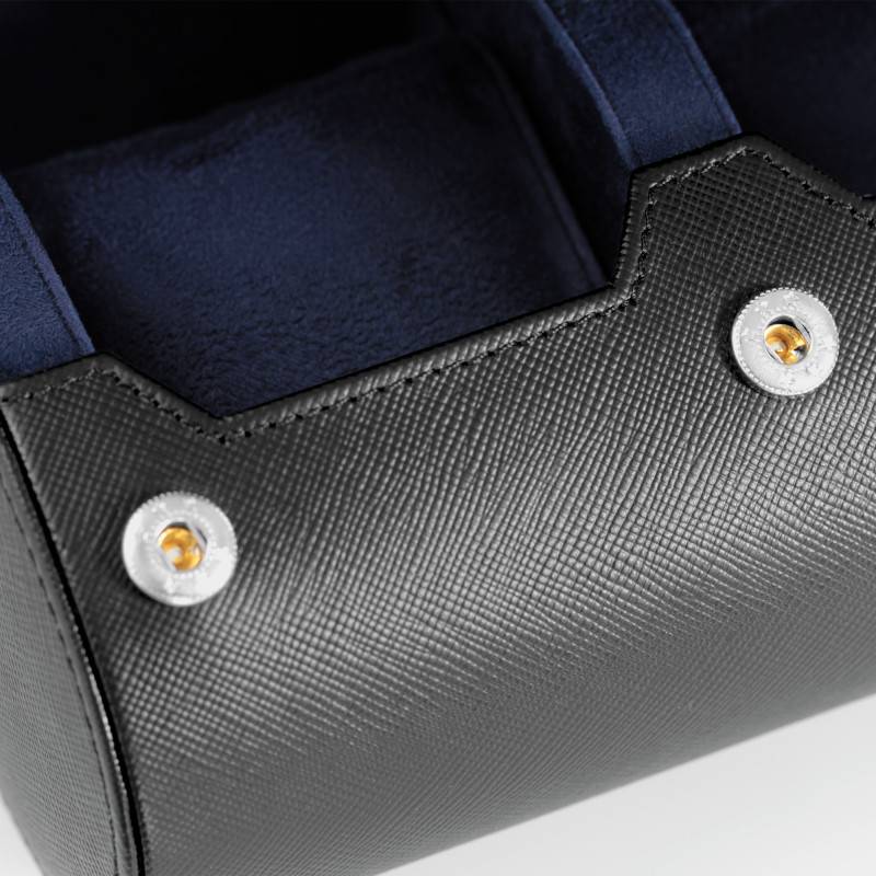La marque incontournable Bouveret incarne la tradition, l'artisanat et l'élégance à la française. Elle présente des bracelets et des accessoires de montres à la fois esthétiques et fonctionnels qui illustrent parfaitement son souci du détail. Ce charmant rouleau 3 montres deviendra une fois acquis votre allié essentiel lors de vos différents déplacements. Il est fabriqué en cuir de vachette avec une finition saffiano et dévoile un habillement noir, le rendant encore plus élégant. Son intérieur arbore une doublure en suédine pour plus de protection. Décliné en trois couleurs, bleu marine, verte empire ou orange, il présente trois compartiments séparés avec chacun un support amovible dans lesquels vous pourrez garder en toute sécurité trois de vos précieuses montres. Ce rouleau est le choix parfait pour voyager en toute tranquillité. Muni de boutons pressions, il glissera souplement dans votre sac ou dans votre valise grâce à sa forme cylindrique elliptique. Pesant 510 grammes, il affiche une largeur de 245 mm et une hauteur de 105 mm pour 75 mm de profondeur.