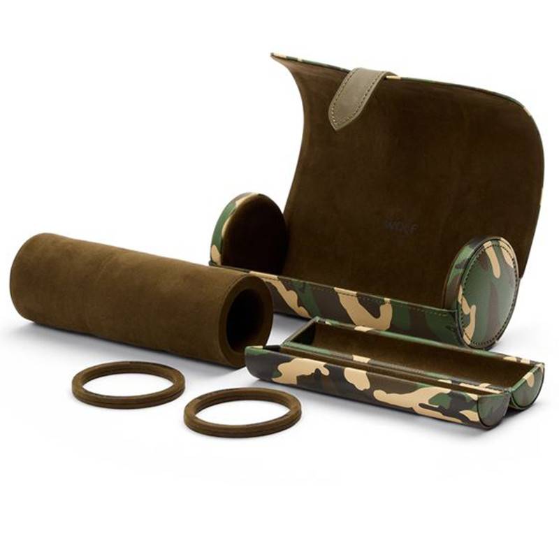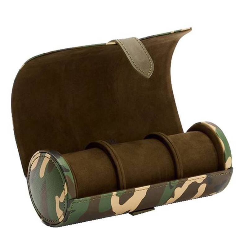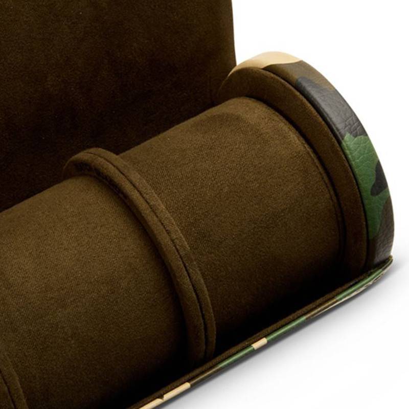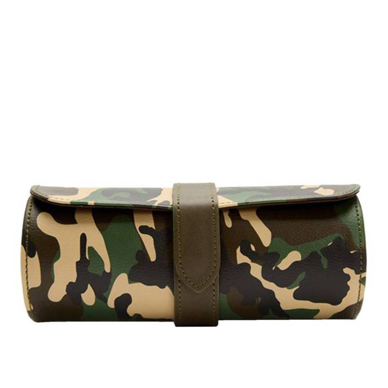 Adapté pour trois montres, ce rouleau est réalisé à partir de cuir à tannage végétal avec une jolie couleur camouflage. Il est très pratique et se compose d'une garde de montre et une capsule cachée pour les bijoux. Ce dernier mesure 19,69 cm de longueur, 8,89 cm de largeur et 8,89 cm de hauteur, ce qui le rend facile à transporter partout et le glisser dans votre sac de voyage. Pour finir, une fermeture à pression réglable assure le maintien de vos accessoires à l'abri.