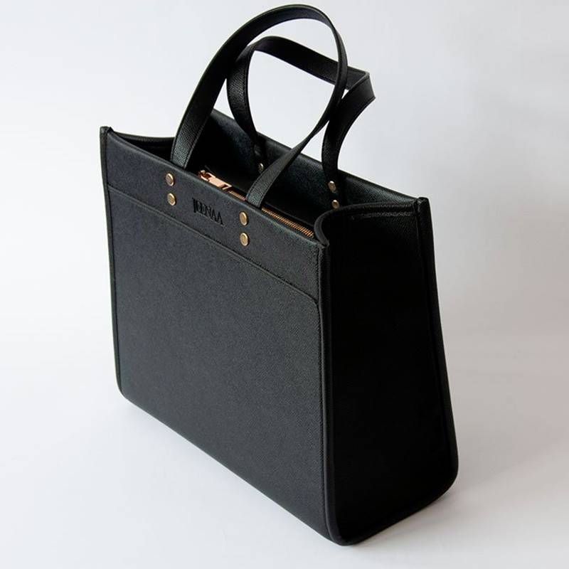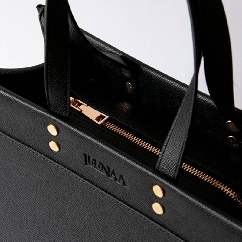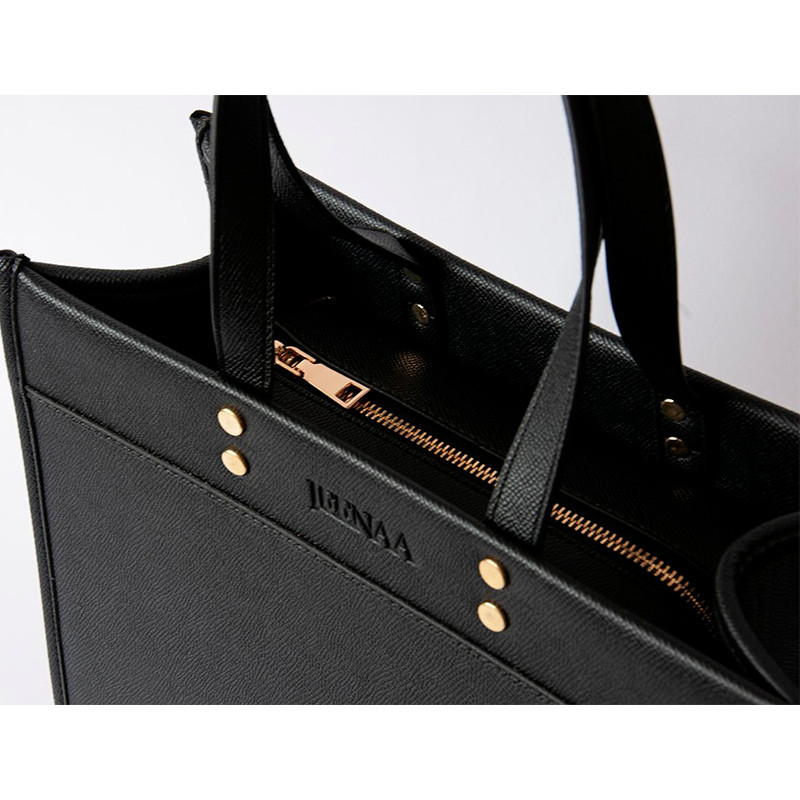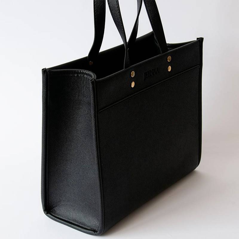 Découvrez la marque Jeenaa de sac à main minimalistes en polyurethane . Avec le sac cabas noir Jeet JEETBLK01 et son design épuré vous pourrez aller au bureau avec style, sans oublier le côté pratique et écoresponsable !