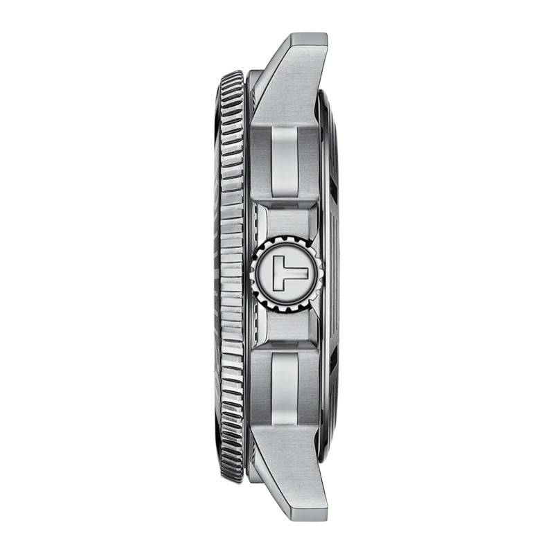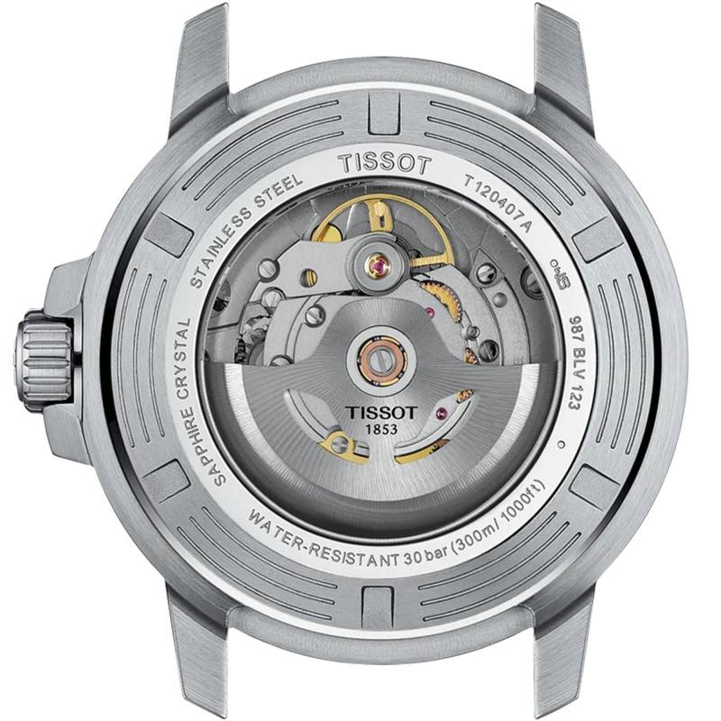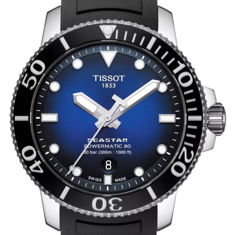 Montre au style plongeuse de la collection T-Sport produite par la maison horlogère suisse Tissot. Ce modèle présente un magnifique fond de couleur bleu qui nous rappelle le fond des océans. Le boitier est de forme ronde, en acier inoxydable 316L et présente un diamètre de 43 millimètres pour une épaisseur de 12.7 millimètres. La couronne est vissée afin de vous garantir une meilleure étanchéité. Pour le fond de la boite, ce dernier est vissée et il vous laisse contempler le merveilleux mouvement PowerMatic 80.111 qui anime la montre. Le cadran est protégé par un verre saphir traité anti-rayures. Cette montre séduira les amoureux des fonds marins et férus de garde-temps destinés à cette activité.