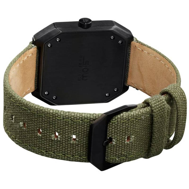 La montre est livrée avec un bracelet de couleur vert olive, avec boucle ardillonnoir. L'étanchéité de cette montre a été testée et estimée à 10 atmosphères soit jusqu'à 100 mètres de profondeur. Elle peut vous accompagner pour faire de la natation mais elle n'est pas adaptée pour faire de la plongée sous-marine.