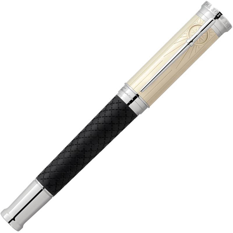 Rendant hommage à Robert Louis Stevenson, le célèbre écrivain écossais et grand voyageur à l'esprit imaginaire, Montblanc lance aujourd'hui des éditions limitées éblouissantes, dont ce charmant stylo bille Writers Edition. Inspiré par le roman “L'Île au trésor', ce dernier arbore des détails finement soignés et épurés qui vous embarqueront dans une aventure épique à la chasse au trésor. Fait en résine précieuse noire, le corps est gravé entièrement par des croix en vous indiquant l'emplacement du trésor sur la carte par un “X” plus large. Le capuchon de couleur blanc cassé est orné par des lignes verticales rappelant les planches de la goélette “Hispaniola” et par 1850-1894, date de naissance et de la mort de Stevenson. Il est rehaussé par un coffre de bord authentique souligné par la citation “Under the wide and starry sky”. Son sommet est embelli par l'emblème Montblanc avec une tête de mort pirate au centre. L'agrafe platinée arbore une forme de cabillot d'amarrage et dévoile au-dessous d'elle une rose des vents. Par ailleurs, vous remarquerez la signature de Stevenson ainsi que la date 1886, année de publication de son première œuvre, gravés sur l'anneau du capuchon. Ce stylo pèse 54,70 gr .