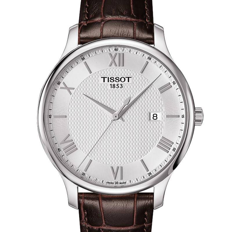 La montre est livrée avec un bracelet en cuir de couleur marron, imitation cuir de crocodile, avec surpiqûres marron. Il se ferme avec une boucle papillon de couleur argentée. L'entrecorne de ce bracelet est de 20 mm.